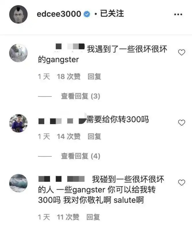 “我是陈冠希,我现在在LA,我遇到一些很坏很坏的人,一些gangster,现在我需要你的帮助,微X转账300块,帮我回到香港,你懂我意思吗,我对你敬礼Salute”。